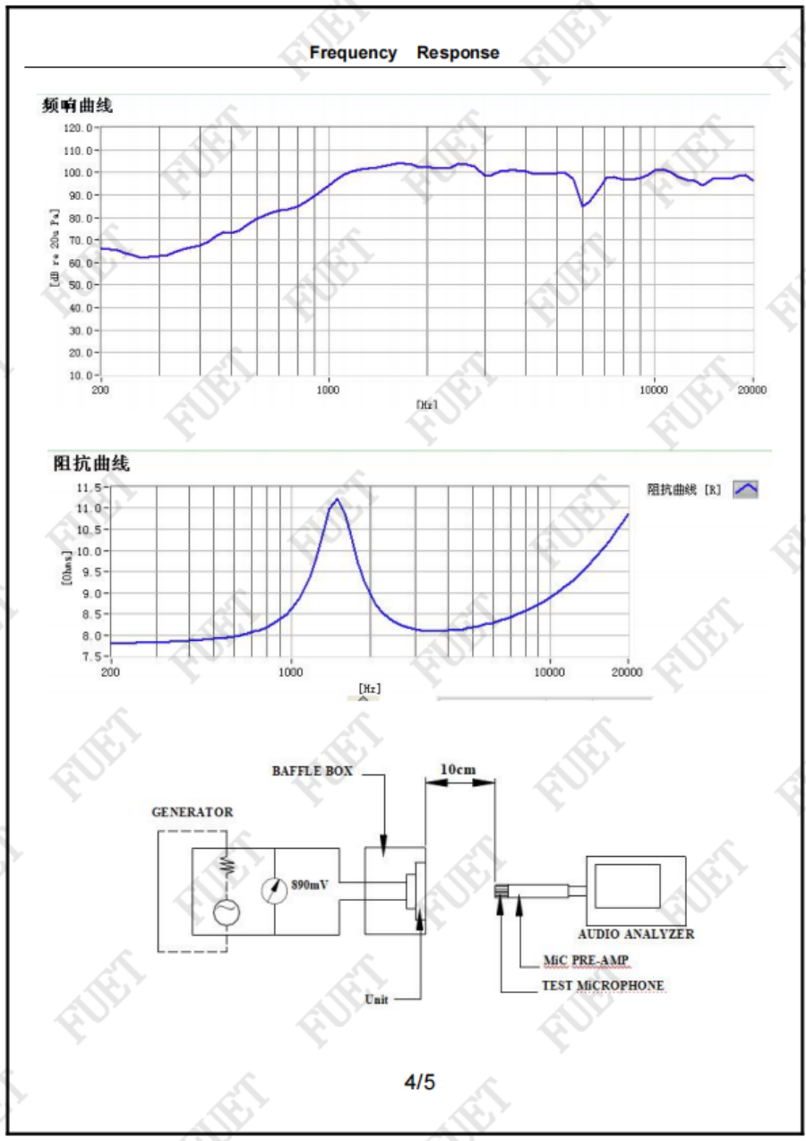 | 阻抗 | 8.0Ω±15% | At 3000Hz 1.0Vrms |