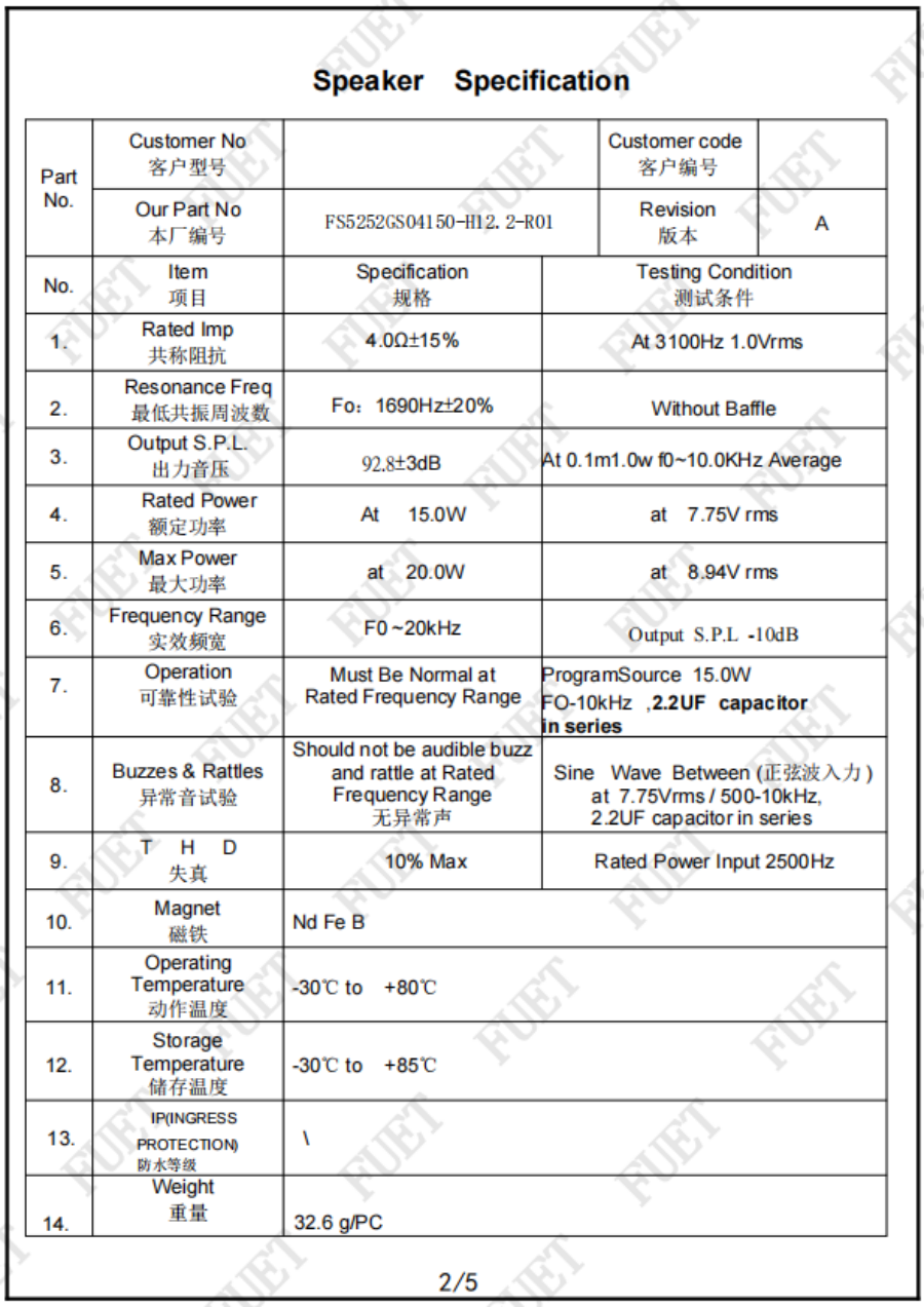 20芯高音喇叭FS5252GS04150-H12.2-R01